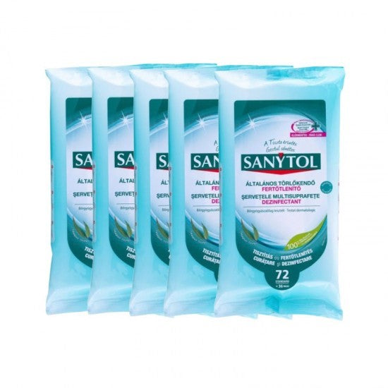 Concepute special pentru WC, baie si frigider, servetelele umede multi-suprafete de la SANYTOL curata si dezinfecteaza toate suprafetele. Utilizate preventiv si regulat, acestea controleaza si regleaza populatia microbiana din casa. Omoara 99,9% dintre virusuri, bacterii si ciuperci, inclusiv Listeria si Salmonella. Dezinfecteaza si curata si fac sa luceasca toate suprafetele, fara clor. Testate dermatologic Servetele umede biodegradabile, 100% viscoza; miros de eucalipt Produs fabricat in Spania.